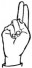 На ћирилици написано МОМЧИЛО СЕКУЛОВ састоји се из 14 слова [?]. Исписано ћириличном једноручном азбуком за глувонеме: